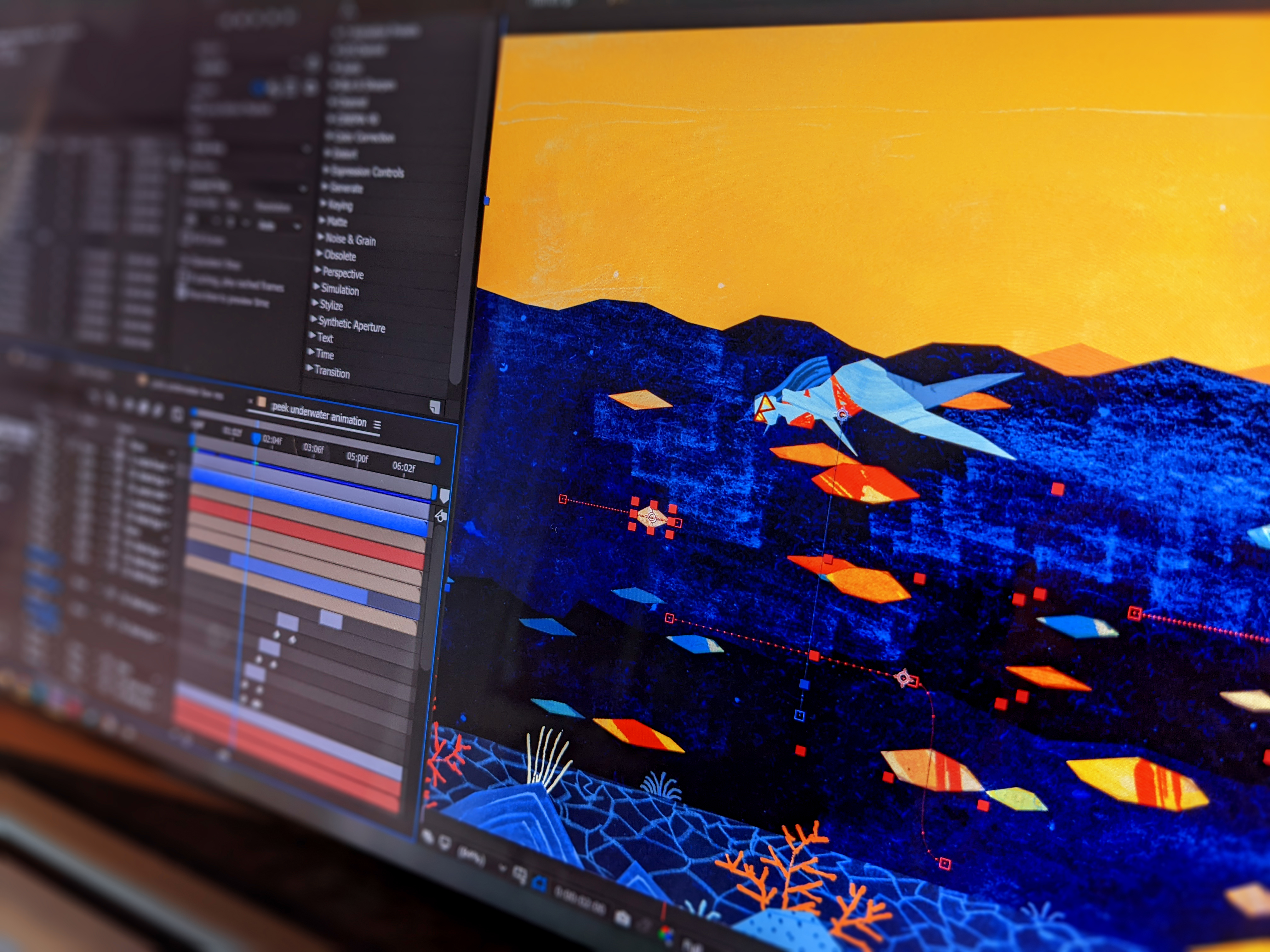 In animation there’s also a lot more preparation and further sketching behind the scenes, because before moving to After Effects, I need to be absolutely clear on what will need to move, how and when, otherwise animating will be absolute pain. But when I finally have all my pieces and all my exact instructions of what to do with them, animating is a zen-like experience, and truly feels like putting a puzzle together.