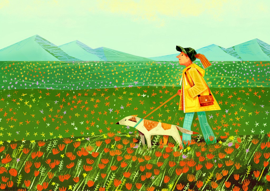 No matter how hard I try, I often end up drawing people with animals, probably because my poodle Molly is always nearby, sleeping under my desk while I draw, and she follows me everywhere!