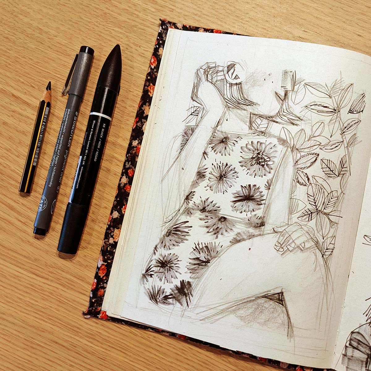 Usually, I fill my sketchbooks beginning from random pages, instead of starting from the first. Somehow it makes my sketching sessions more relaxed. To be fair, my entire workflow is a battle against my own mind!