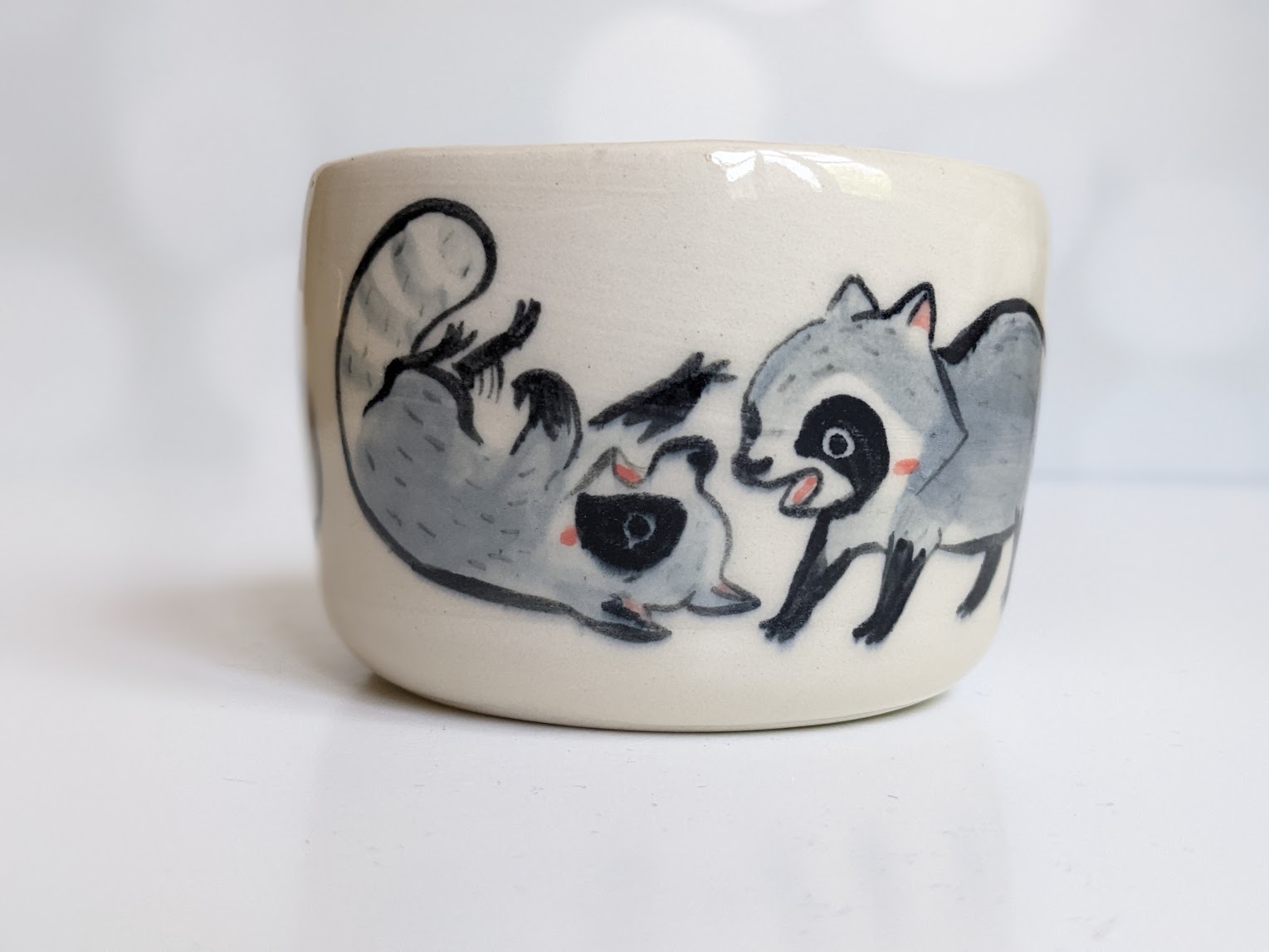 My main and only theme is cute animals. I work in watercolors and ink for illustration. My main gig is as a ceramic artist creating porcelain figurines and ceramic jewelry.
