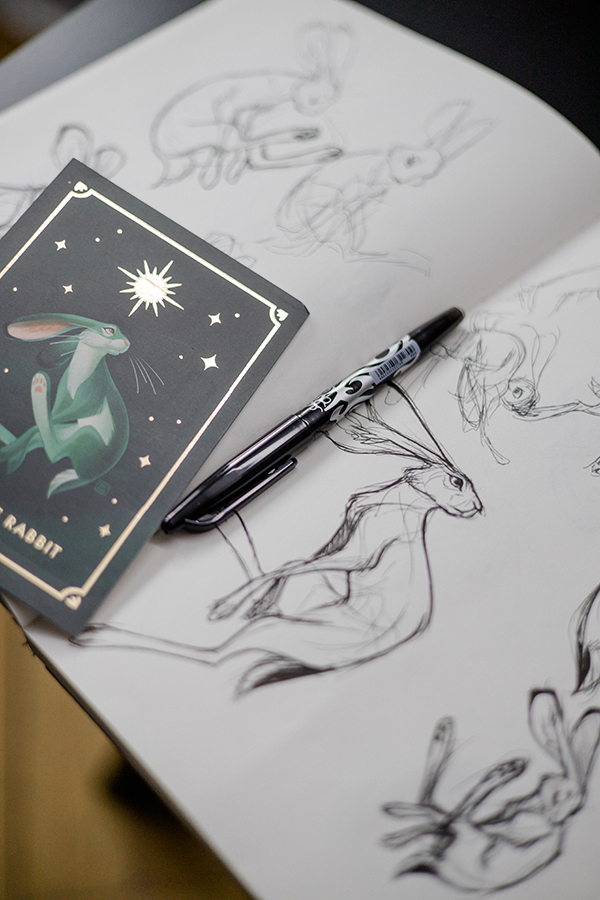 When I have an idea, I usually go through my “inspirations” folder on my computer or my many Pinterest boards and create a mood board. Then I doodle some thumbnails, sometimes on paper or on my iPad. Based on the thumbnails, I make a few sketches and quickly add some colors and lighting, always checking my mood board to make sure I’m on the right track. In the sketching phase, I often flip the canvas to see if there are any mistakes in the anatomy, or I ask art friends for a second opinion. Sometimes I also sleep on it for a night before I start coloring the sketch. If I don’t have inspiration at the beginning, for example with client projects, I first do some research to get a feel for the subject. Then I continue with my usual process.