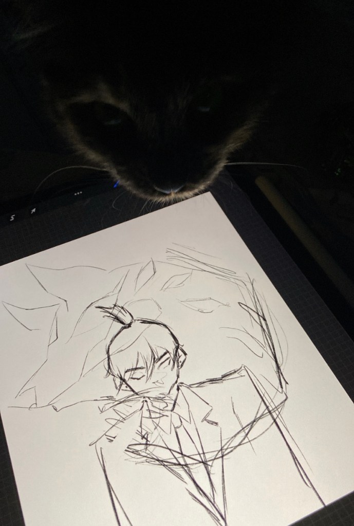 When I get art blocks, I watch my favorite shows, clean (even if it’s already clean lol) because sometimes I’ll open a sketchbook and get inspired by my older works. But sometimes the answer is just taking a nap and cuddling/playing with my cat!